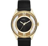 ساعة مارك جاكوبس الأصلية لـ Ladeis In Egypt Tether MBM1376 مينا أسود وذهبي، حزام من ألياف الجلد الأسود
